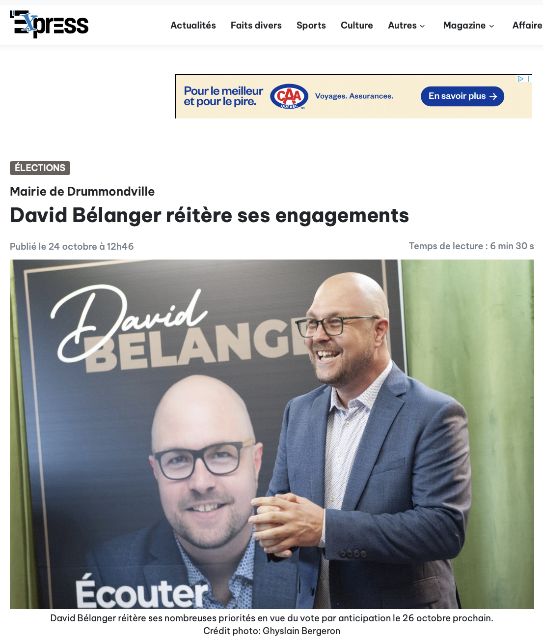 Drummondville 2025 David Bélanger veut mettre son bagage antérieur au service de la Ville Written by David | 23/10/2025 READ MORE