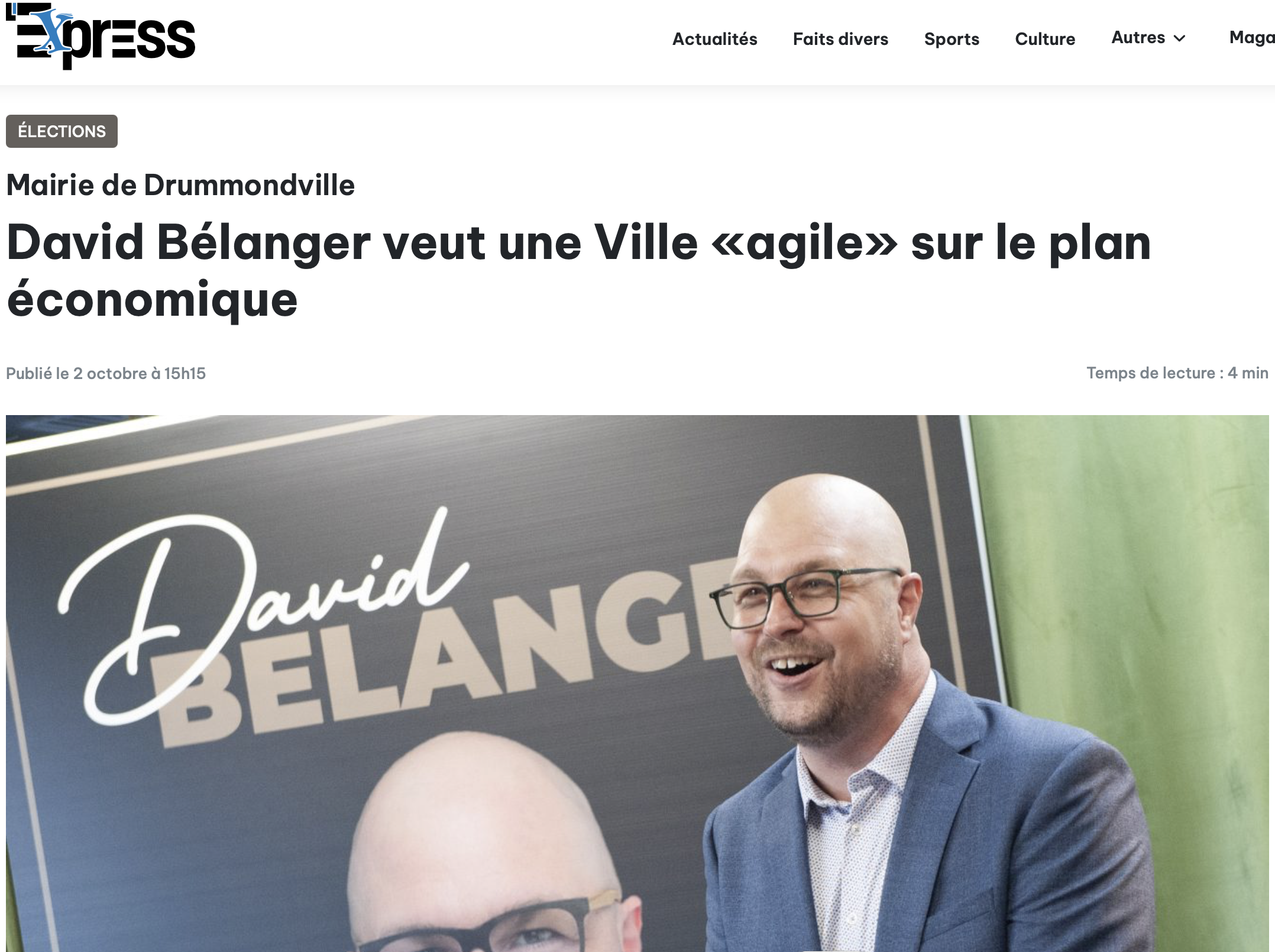 Drummondville 2025 David Bélanger veut une Ville «agile» sur le plan économique Written by David | 02/10/2025 READ MORE