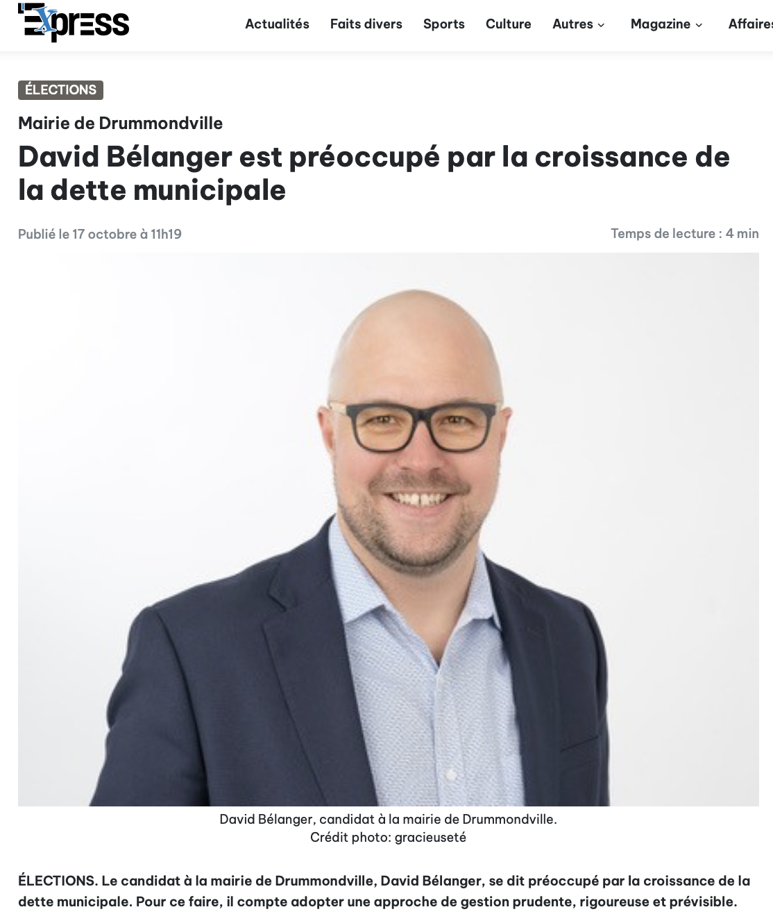 Drummondville 2025 David Bélanger est préoccupé par la croissance de la dette municipale Written by David | 23/10/2025 READ MORE