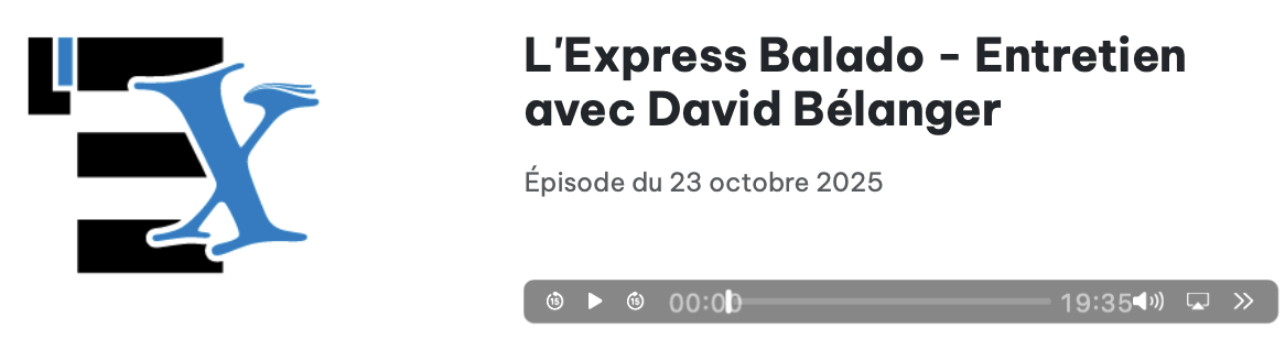 Drummondville 2025 L’Express Balado – Entretien avec David Bélanger Written by David | 23/10/2025 READ MORE